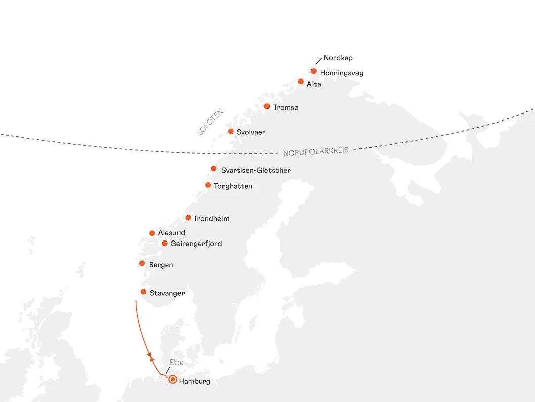 | 05.12.2025 | Polarlicht-Abenteuer Norwegen (Musikreise) – Weiße Welt der funkelnden Abenteuer | NAT2524 | Von Hamburg nach Hamburg | 15 | ab 9.190€ | Alleinreisende zahlen auf dieser Reise in den Kategorien 1-8 keinen Aufpreis auf die reguläre Seereise (gilt für den PLATIN-Tarif) |