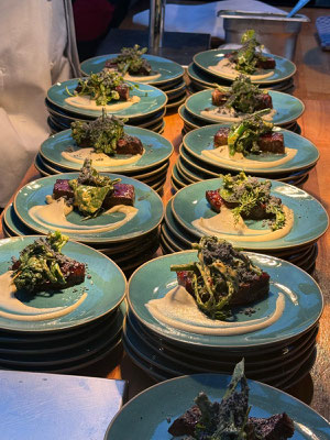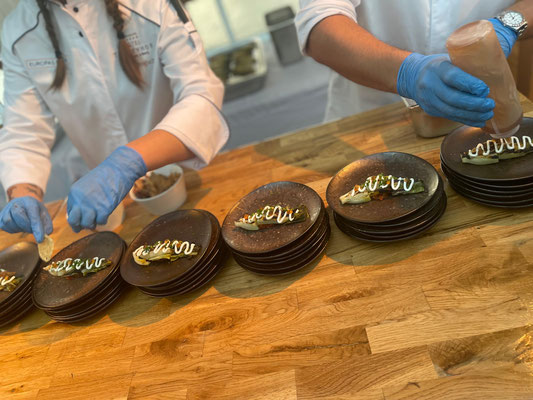 Trotz des Regens, der uns zu Beginn des Abends begleitet hat, war die Atmosphäre einzigartig. Unter den Überdachungen versammelten sich die Gäste, um gemeinsam die exquisiten Kreationen der Köche zu genießen.