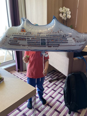 Auf dem Schiff angekommen, folgte eine persönliche Begrüßung. An der Gangway wurden wir bereits von den Nannys freundlich in Empfang genommen und mit Namen begrüßt. Als Willkommensgeschenk erhielt mein Junior von der Chefnanny höchstpersönlich einen großen EUROPA 2 Luftballon, den er stolz in unsere Kabine trug. Unsere Kabine lag übrigens praktischerweise auf Deck 8, also auf demselben Deck wie der Kids Club. So hatten wir nur kurze Wege zum Club, was vor allem morgens und abends besonders angenehm war.