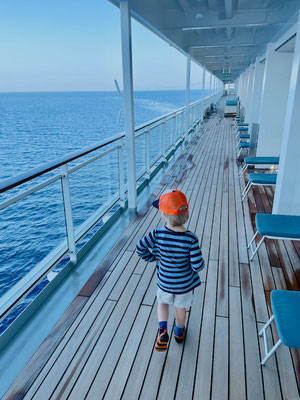 Kleine Wasserratten hatten zweimal pro Tag zu speziellen Badezeiten die Chance, den Pool auf Deck 9 für sich alleine zu nutzen und nach Herzenslust zu planschen. Diese Badestunden genoss mein Junior ausgiebig. Hier waren wir auch als Vater und Sohn einige Male gemeinsam schwimmen