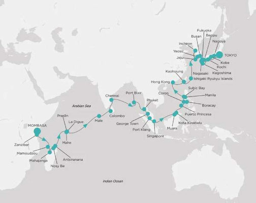 Wer sich den großen Traum einer Luxus Kreuzfahrt Weltreise erfüllen möchte, kann sich für ein 5-Sterne-plus-Schiff entscheiden und in +/- 200 Tagen beliebte Destinationen auf der ganzen Welt entdecken. Eine solche Weltreise führt Sie zum Beispiel über Dubai am Persischen Golf auf die indonesische Insel Bali im Indischen Ozean. Von Bali aus steuern Sie gegebenenfalls Australien, Neuseeland und Inseln im Südpazifik an. Oder starten Sie in San Francisco, um über Mexiko, den Panamakanal und die Karibik wieder nach Hause zurückzukehren.