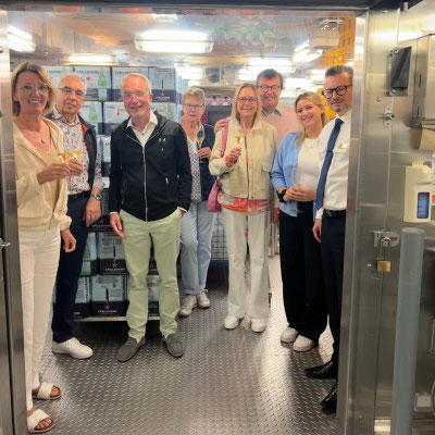 Am Abend stand etwas ganz Besonderes auf dem Programm, exklusiv für unsere Emocean-Gäste. Hotelmanager Frank Neumann führte uns persönlich in die verborgenen Bereiche der EUROPA 2: die Proviantlager. Tief unten im Schiff, zwischen Kühlräumen, Weinregalen und Kaviar-Kisten, erzählte er von Logistik, Lieblingslieferanten und kleinen Katastrophen, die nie jemand bemerkt. Es war ein faszinierender Blick hinter die Kulissen, informativ und herzlich zugleich.