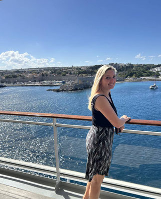 In Syrakus wachte ich am nächsten Morgen auf und sah die Altstadt von Ortigia in der Sonne glitzern. Eine Aussicht wie gemalt. Mit einem kleinen Stadtplan von Hapag-Lloyd in der Hand ging ich allein an Land, schlenderte durch die Gassen, über Märkte und an alten Steinfassaden vorbei. Mein süßer Moment: ein Cannoli mit Pistazienfüllung, noch leicht warm, und für einen Augenblick fühlte ich mich wie in einem Film.