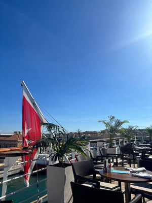 Am nächsten Morgen erwachen wir vor Marmaris, einer lebhaften Hafenstadt an der türkischen Ägäis, ganz im Südwesten des Landes, dort, wo die Küste ins Mittelmeer übergeht. Sonne satt und unser erster großer Emocean-Moment: der Champagner-Empfang.
