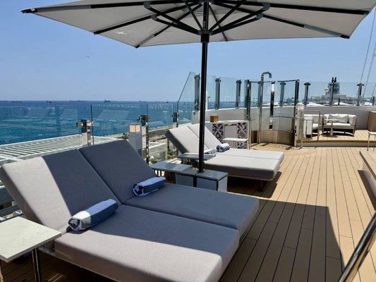 Nach der Rückkehr an Bord genossen wir den großzügigen SPA-Bereich auf Deck 10 und ließen bei leisen Klängen die Seele am Pool baumeln. Erholung in ihrer schönsten Form!