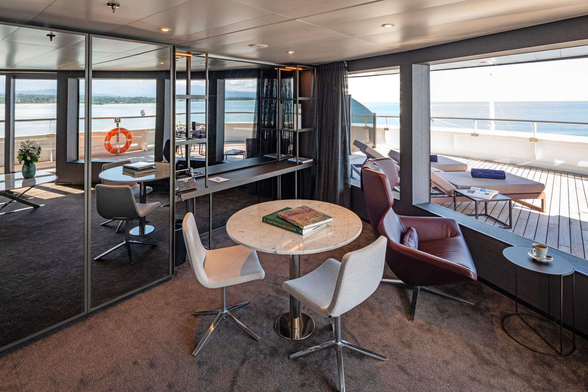 Bei einer Größe von 105 bis 110m² bieten die Panorama-Suiten alle Annehmlichkeiten einer Veranda-Suite und zusätzlich: