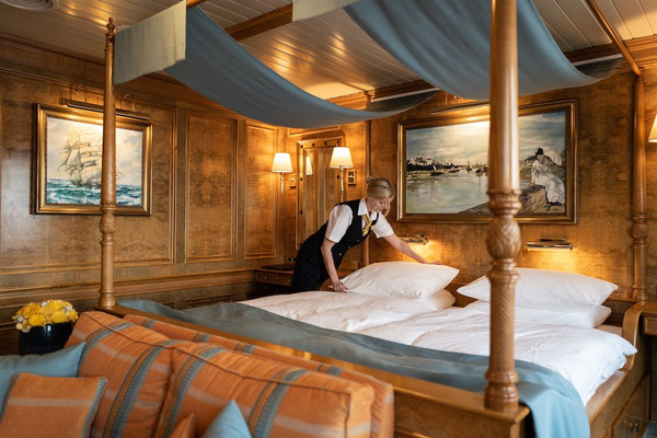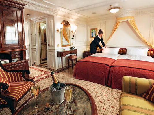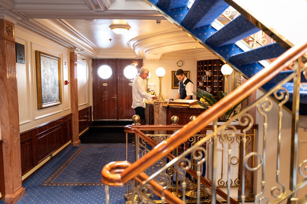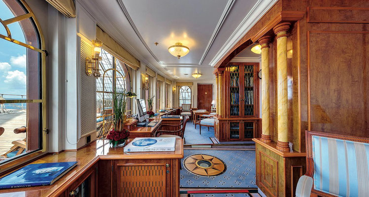 Das 2001 getaufte Schiff misst 106 Meter Länge und bietet Platz für nur 94 Gäste. An Bord erwartet Sie eine Atmosphäre wie auf einer privaten Yacht: klassisches Interieur mit edlen Hölzern, Messingdetails und großzügigen Suiten.