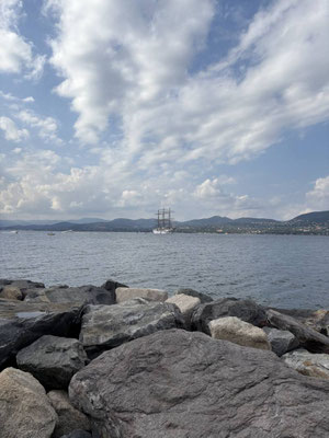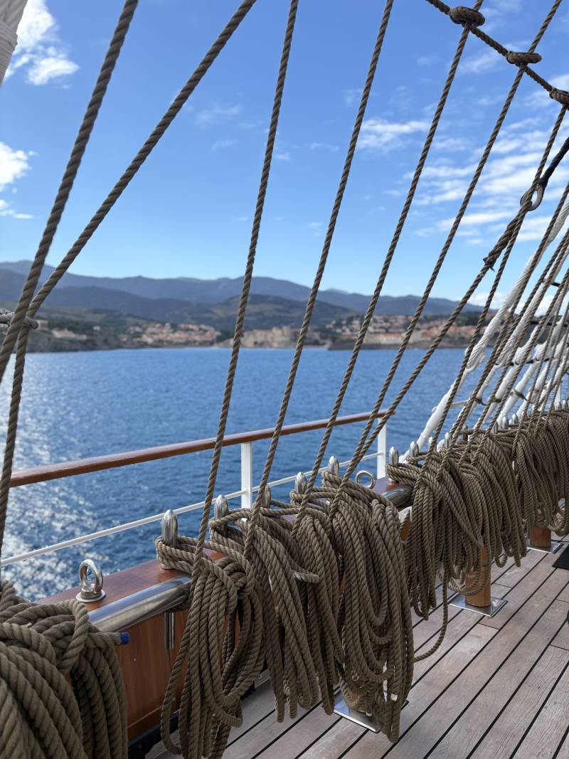 Er informiert uns darüber, dass wir Sète nicht wie ursprünglich geplant am Montagmorgen, sondern bereits am Sonntagabend erreichen werden. Hintergrund ist eine Anpassung an die Wetter- und Seegangssituation, um die angenehmsten Bedingungen für die Überfahrt zu nutzen. Die Entscheidung wird offen kommuniziert und findet an Bord viel Zustimmung. Man spürt, dass Sicherheit und Komfort für Gäste und Crew im Mittelpunkt stehen. Für unseren heutigen Tag ändert sich jedoch nichts: Die Sea Cloud Spirit setzt Kurs auf St. Tropez.