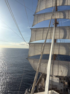 Mein heimlicher Traum ging noch ein Stück weiter: Einmal selbst in die Takelage klettern und von dort oben auf „mein“ Schiff und das Meer hinunterblicken. Auf meiner Reise mit der Sea Cloud Spirit im Oktober 2025 wurde genau dieser Wunsch wahr.