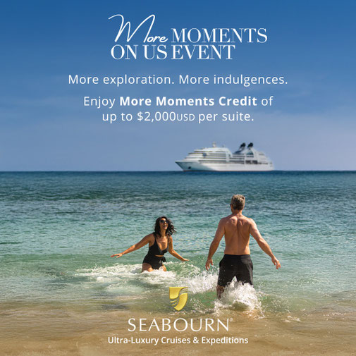 Weitere Ultra-Luxury Seabourn Kreuzfahrten ab 3.698€ p.P. im Moments on Us Event mit bis zu 2.000$ Bordguthaben pro Suite.