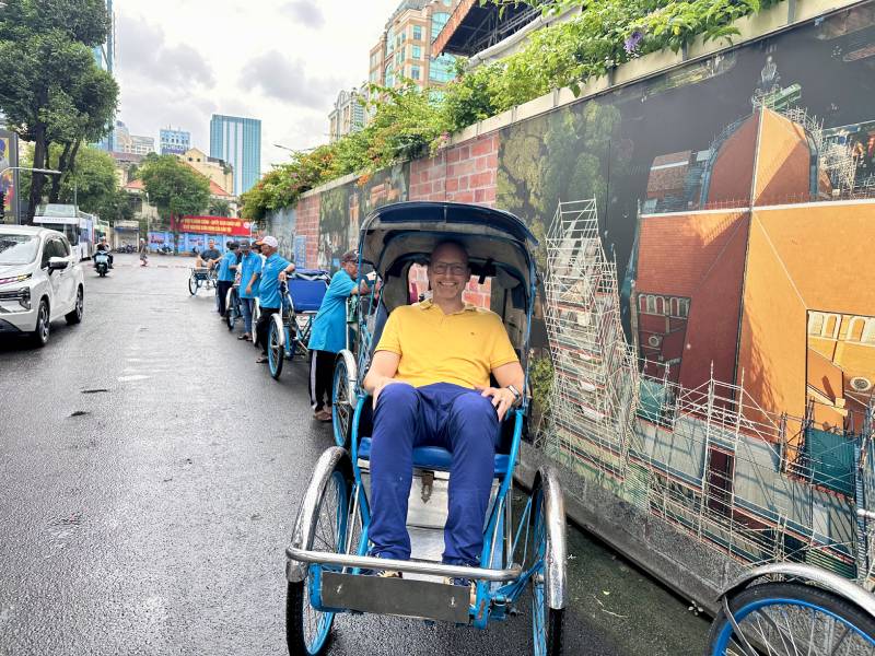 Der Ausflug, den Silversea an diesem Tag wieder organisiert hatte, war eine kleine Reise durch das Herz der Stadt. Vom Postamt aus ging es mit dem Pedicab durch das morgendliche Verkehrschaos, zwischen Motorrollern, hupenden Taxis und Straßenständen, an denen Mangos, Durian und bunte Textilien zu Türmen geschichtet waren. Alles schien sich gleichzeitig zu bewegen und dennoch einer eigenen, unsichtbaren Ordnung zu folgen.